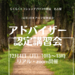 11月 27, 2023 / 最終更新日時 : 3月 27, 2025 ns62849 お知らせ・記事 12/4 AEAJアドバイザー認定講習会 お見逃しなく! アロマテラピー検定一級の合格者の皆様おめでとうございます!お問い合わせも増えてきましたが、今期のアドバイザ認定講習会は12月4日(月)10時~13時 zoom、対面での開催となります。 お申し込みは対面12月1日(金)、 […]
