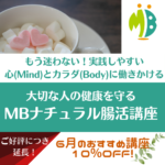 6月 1, 2023 / 最終更新日時 : 3月 27, 2025 ns62849 新着情報 【終了しました】大好評につき!6月のおすすめ講座はMBナチュラル腸活講座です。 先月のおすすめ講座とさせていただいた、「MB(マインド&ボディ)ナチュラル腸活講座」たくさんの方にご受講いただき、 「講座を受けて、一度食卓を見直してみようというきっかけになった!」「すごい内容とボリュームでお得感満載で […]