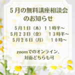 5月 1, 2025 / 最終更新日時 : 5月 1, 2025 ns62849 新着情報 好評!5月の無料講座相談会のお知らせ ある程度、資格はとったものの、この先どう進めていったらわからない、どんな風に自分のキャリアプランを進めていったらいいか悩んでいるそんな皆様のために、年明けから「講座相談会(無料)」をスタートしました。 気になる講座、自分 […]