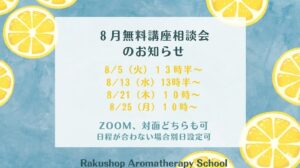 8月は、クレイテラピー基礎講座 をおすすめ講座とします! 連日の猛暑で、心も体もお疲れ気味ですね。クレイは老廃物や余分なものを取り去ってくれるもの。 クレイの力を借りて、心も体もリフレッシュする方法をご一緒に学びませんか […]