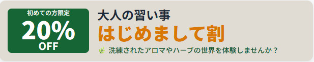 - はじめて方応援割対象・・・新しくアロマを学ぶ方の応援キャンペーン5%OFF