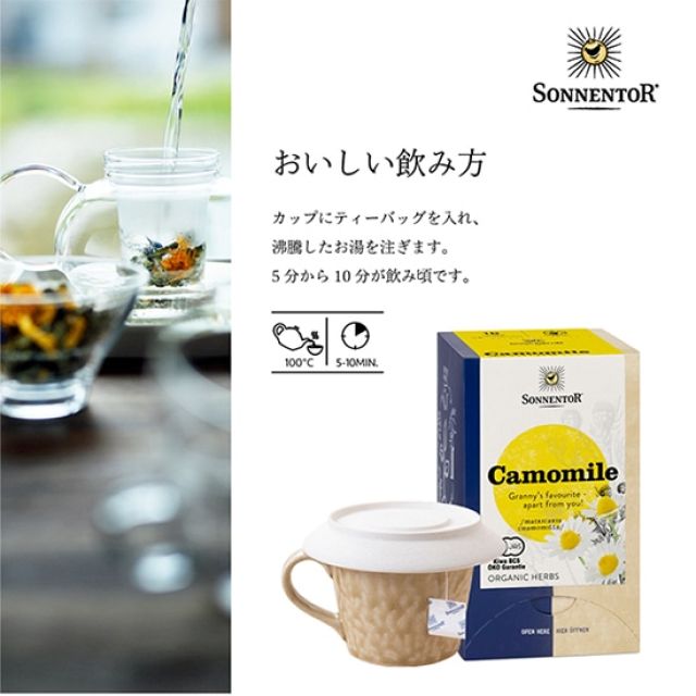 小さな村から始まったハーブティーは、やがてそのクオリティと理念の高さから世界中の注目を集めることとなりました。現在では、世界一流のホテルでも採用され、ヨーロッパを代表するハーブティ-ブランドとして世界約45ヵ国で愛飲されています。●ゾネントア社のこだわり・バイオダイナミック農法で栽培された原材料を使用。
